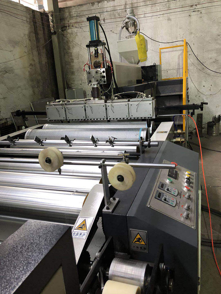 本機主要由擠出機、真空氣泡成型機構(gòu)、點斷機構(gòu)、收廢機構(gòu)、電氣控制系統(tǒng)七大主要部件組成,實現(xiàn)原料從加料口加入,直至成品收卷自動控制的機電一體化產(chǎn)品。